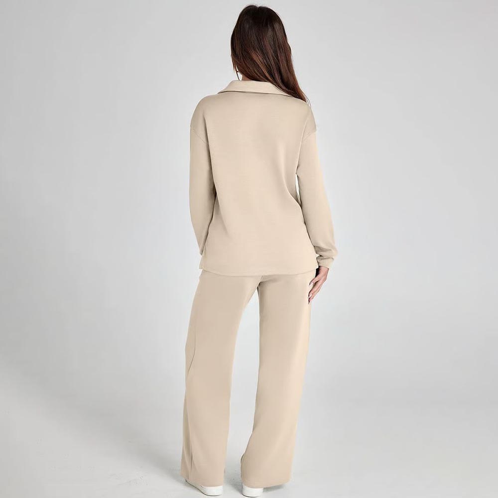 The sweat sets designed with a sporty polo collar, V-neck and high-low hem,high waisted pants with Drawstring,drawcord for a custom fit with a loose fit that reveals wide legs,High-low hem offers extra coverage in back, 4-way stretch for easy movement.