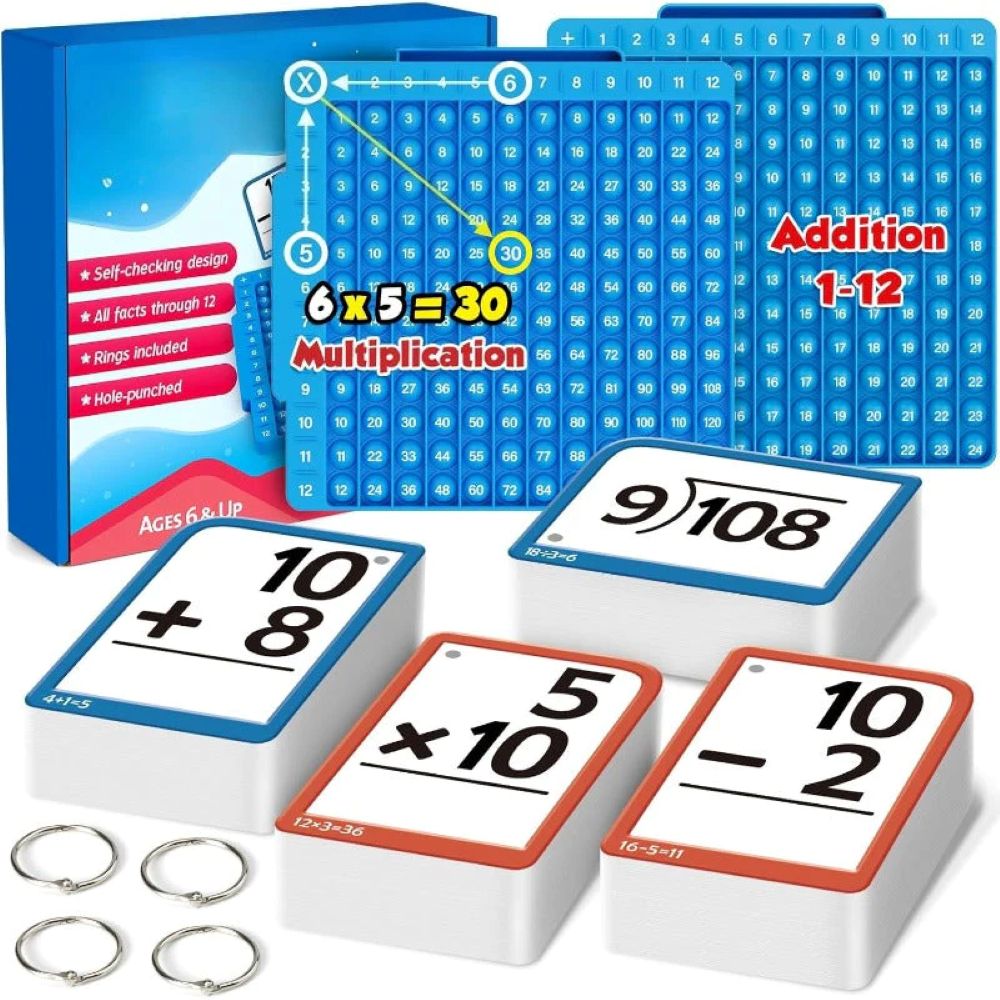 This all-in-one math set includes a double-sided silicone board and 332 interactive flashcards. Designed to make math enjoyable, kids can explore all four operations through hands-on learning and engaging activities.