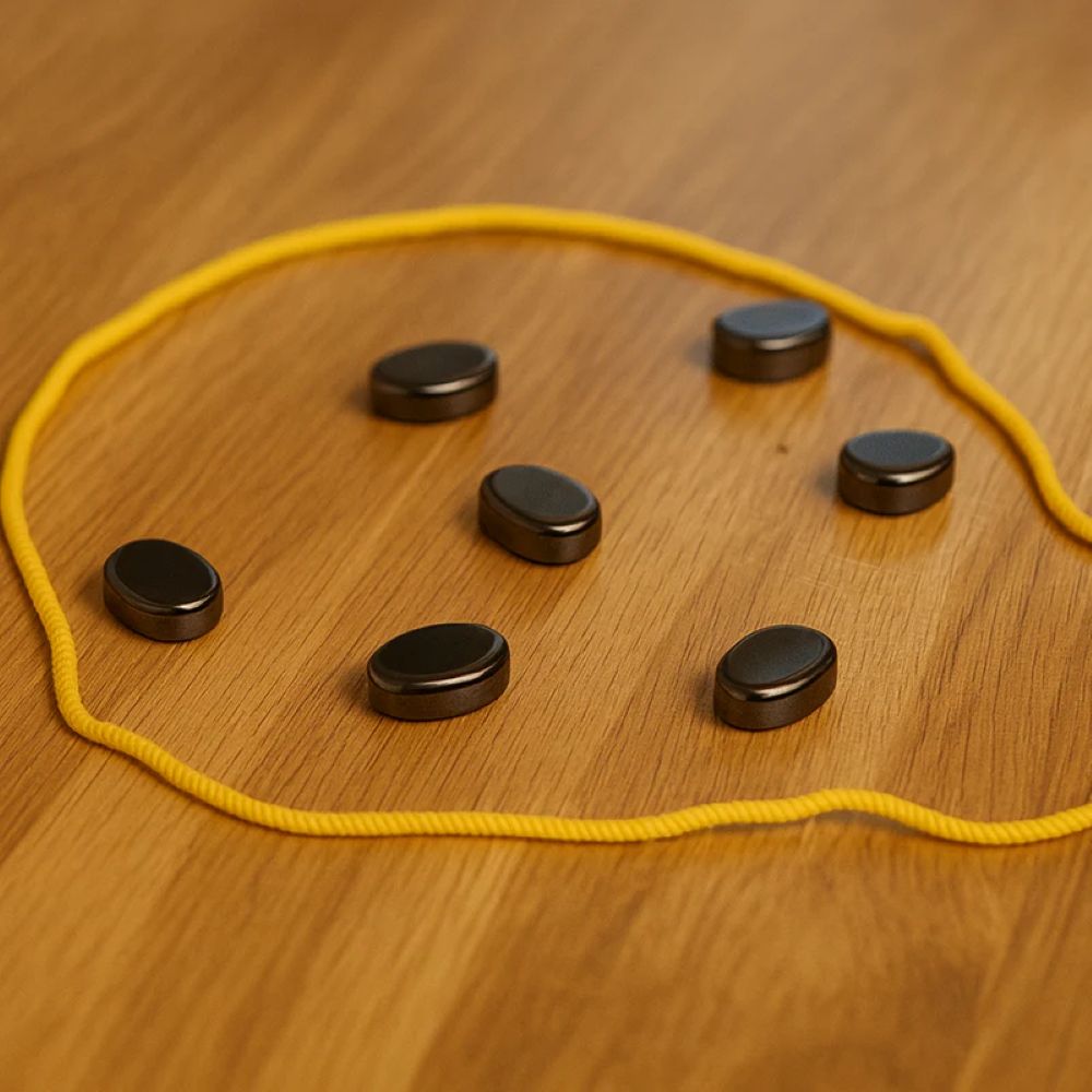 Each player places one of their magnets inside the play area, without letting them snap together.
