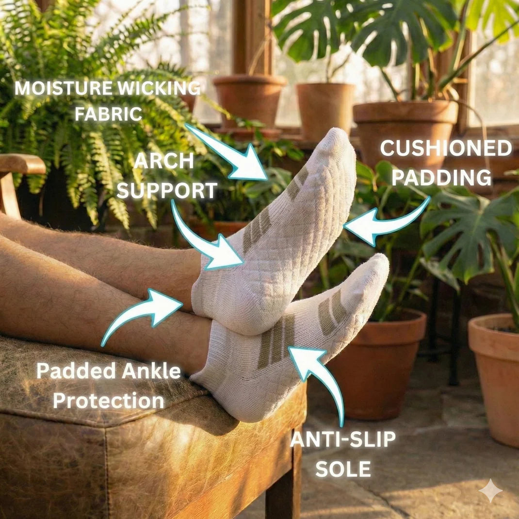 Comfort padding, strong arch support, ankle protection, and a perfect fit made for long hours on your feet. Designed with premium cotton cushioning and stable support for your most comfortable step yet.