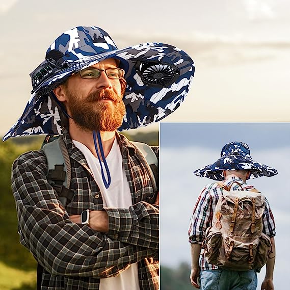 ✪ Solar-Powered Cooling : Stay refreshed with the built-in solar-powered fan of our outdoor fishing hat, offering a cool breeze to beat the heat during outdoor adventures.