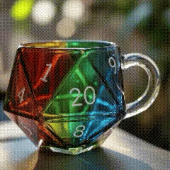 🎲 Tabletop fans, this mug is MADE for you! Shaped like a D20 dice with rainbow hues—perfect for sipping during game nights or cozy mornings. Adds geeky charm to every drink.